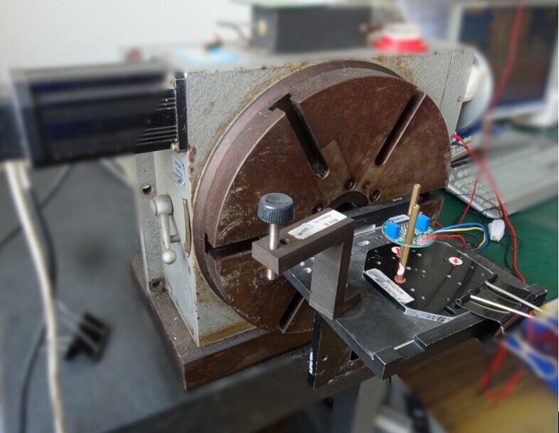 按照試品相關(guān)文件中的規(guī)定,以理論輸出為零度位置安裝在高精度轉(zhuǎn)臺(tái)