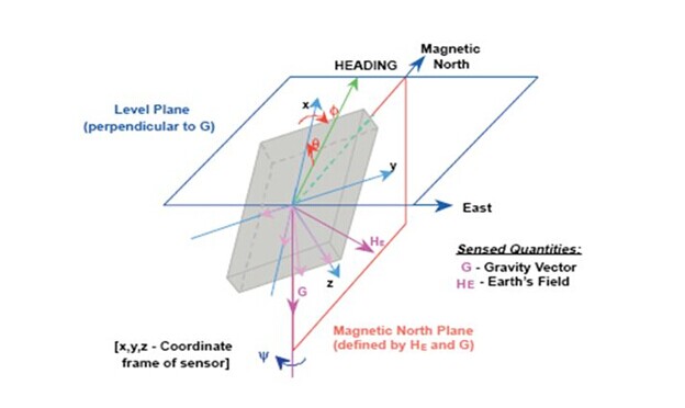 用地磁場(chǎng)在X和Y的兩個(gè)分矢量值便可確定方位值: