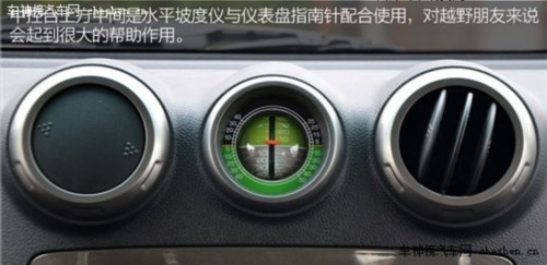 中控臺上方中間是水平坡度儀與儀表盤指南針配合使用,對越野朋友來說會起到很大的幫助作用。如下圖所示。