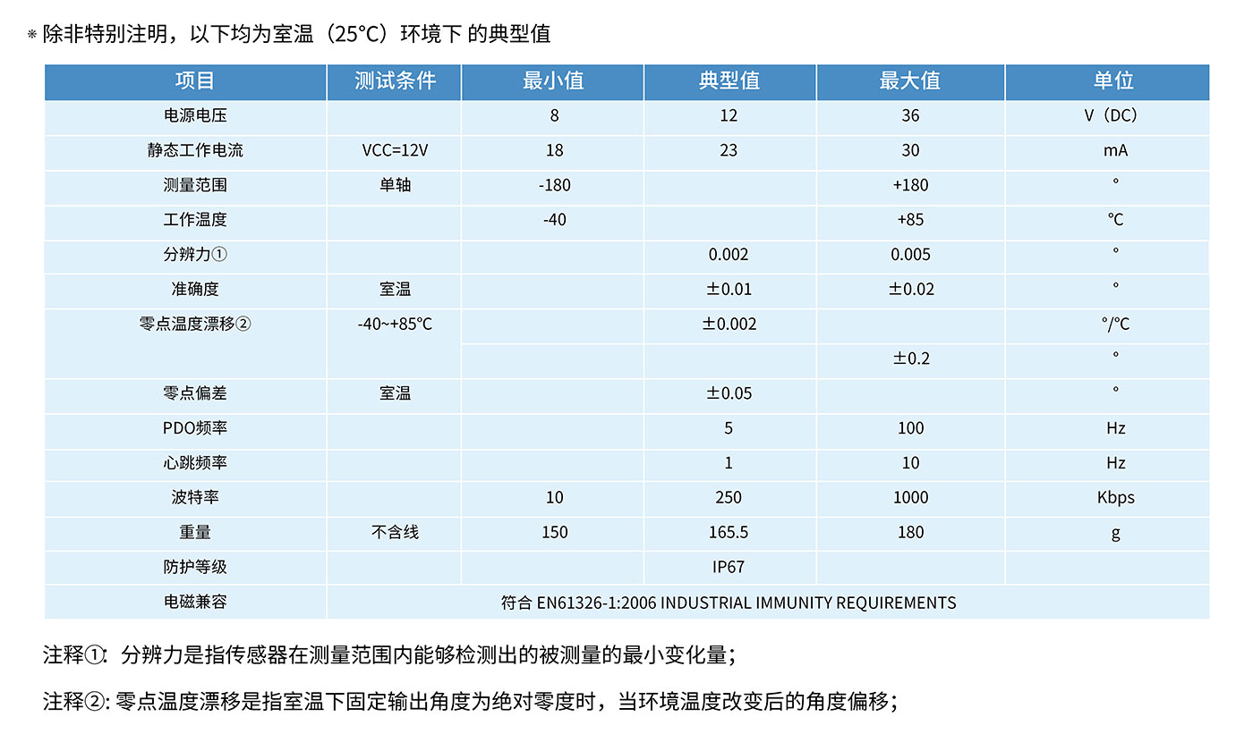 ? ? ? ? ZCT1xxxN-LCT-Ax-H2-760x 是直川科技研發(fā)生產(chǎn)的高精度單軸傾角傳感器,產(chǎn)品量程可達 ±180°,支持CANOPEN 協(xié)議。可在任何位置設置相對零點。