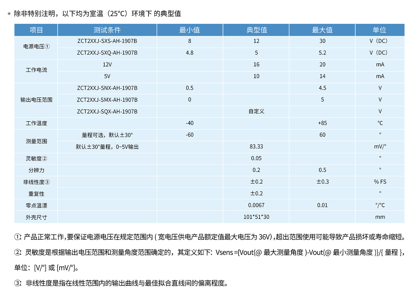 ? ? ? ? ? ZCT2XXJ-SXX-AH-1907B 是直川科技研發(fā)生產(chǎn)的單 / 雙軸模擬電壓傾角傳感器 ,0.5 ~ 4.5V 或者 0 ~ 5V 電壓輸出。
